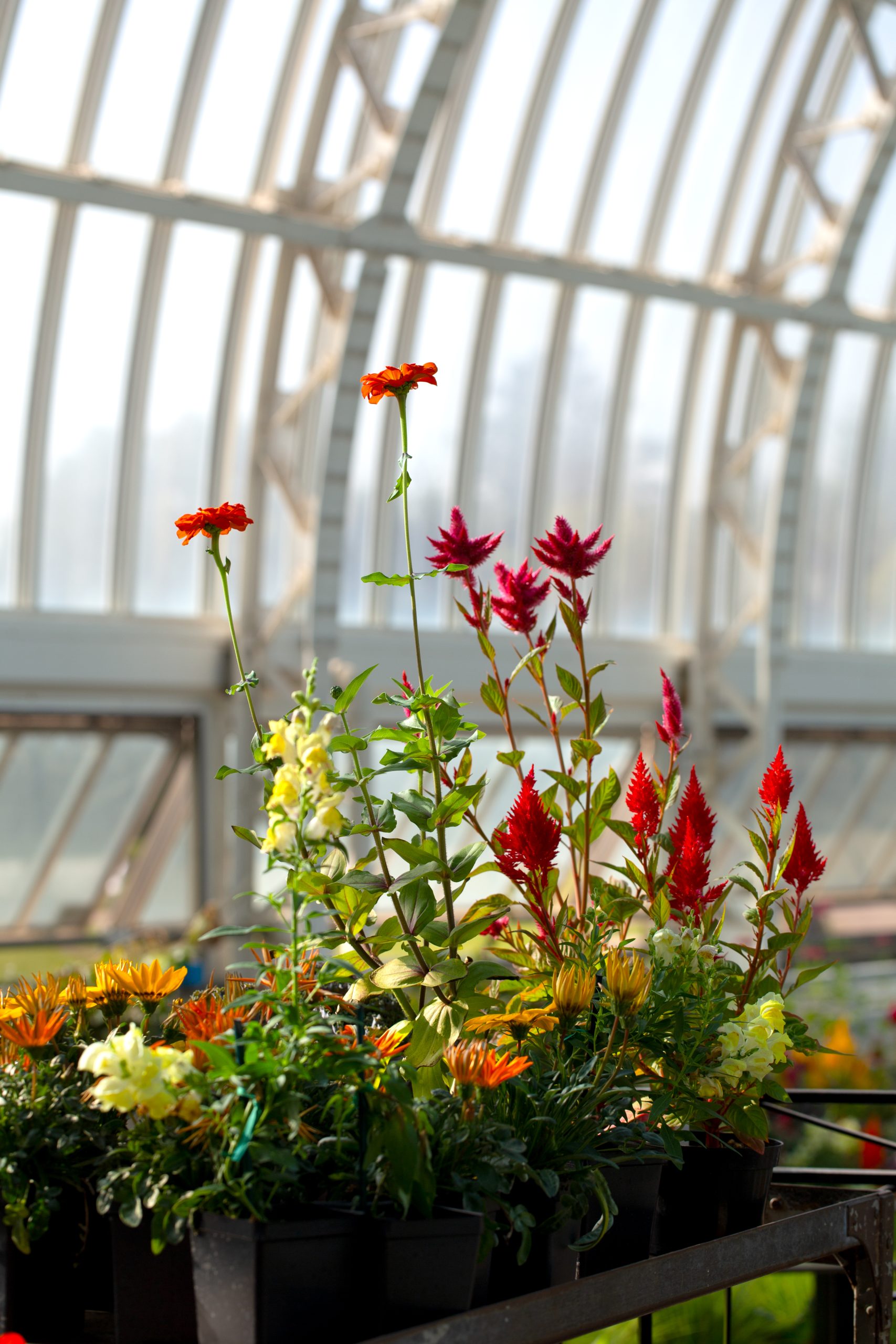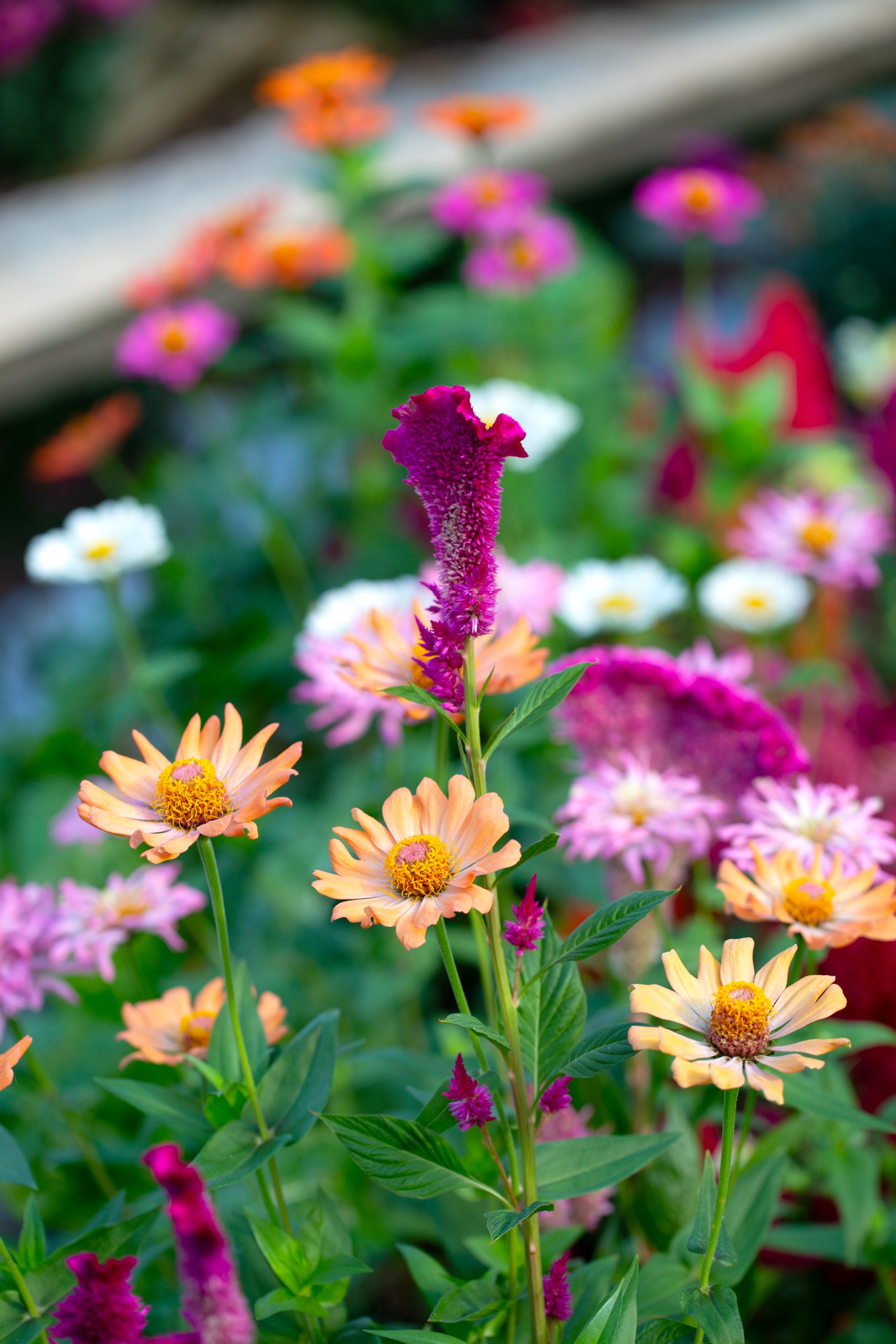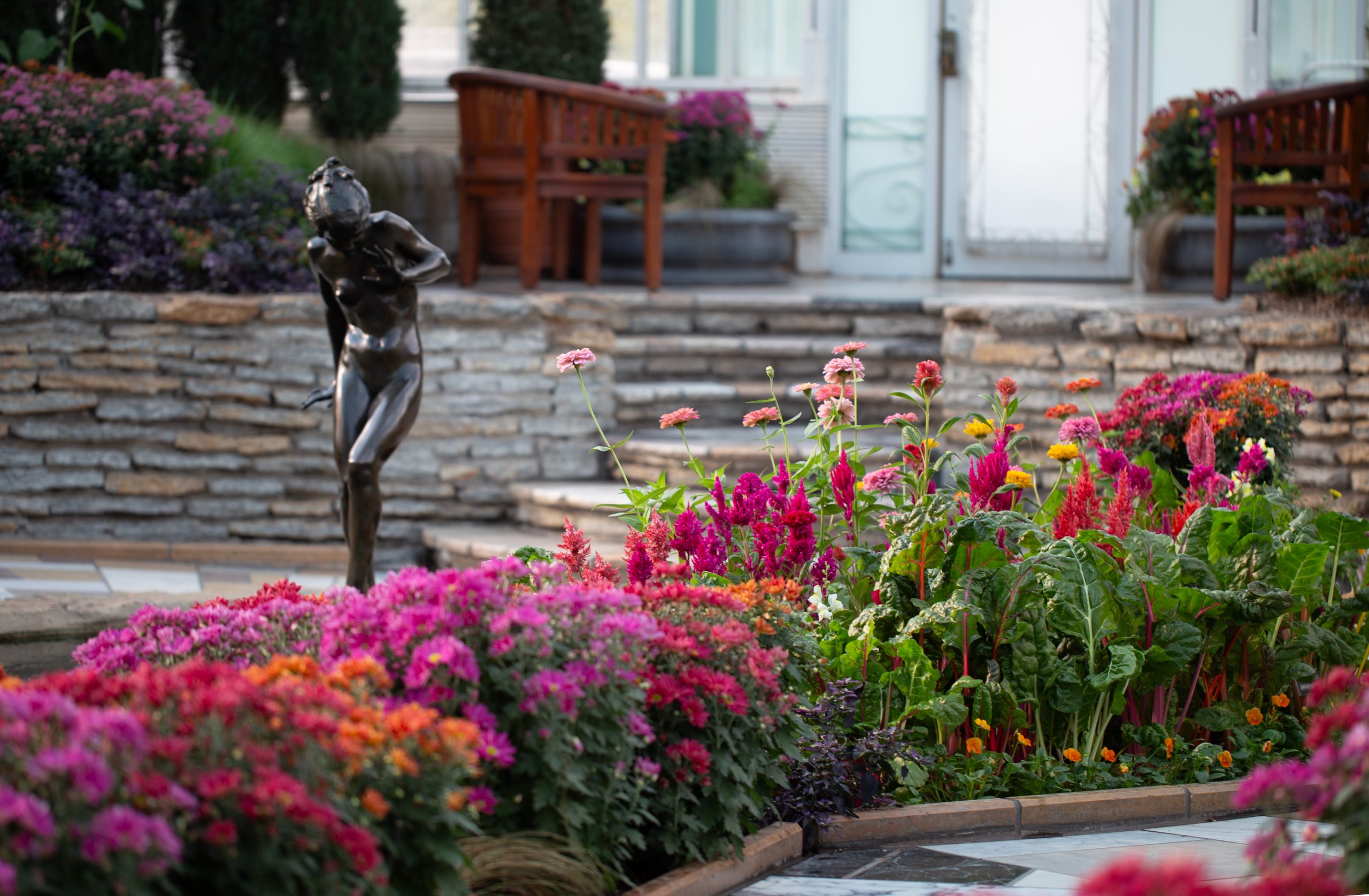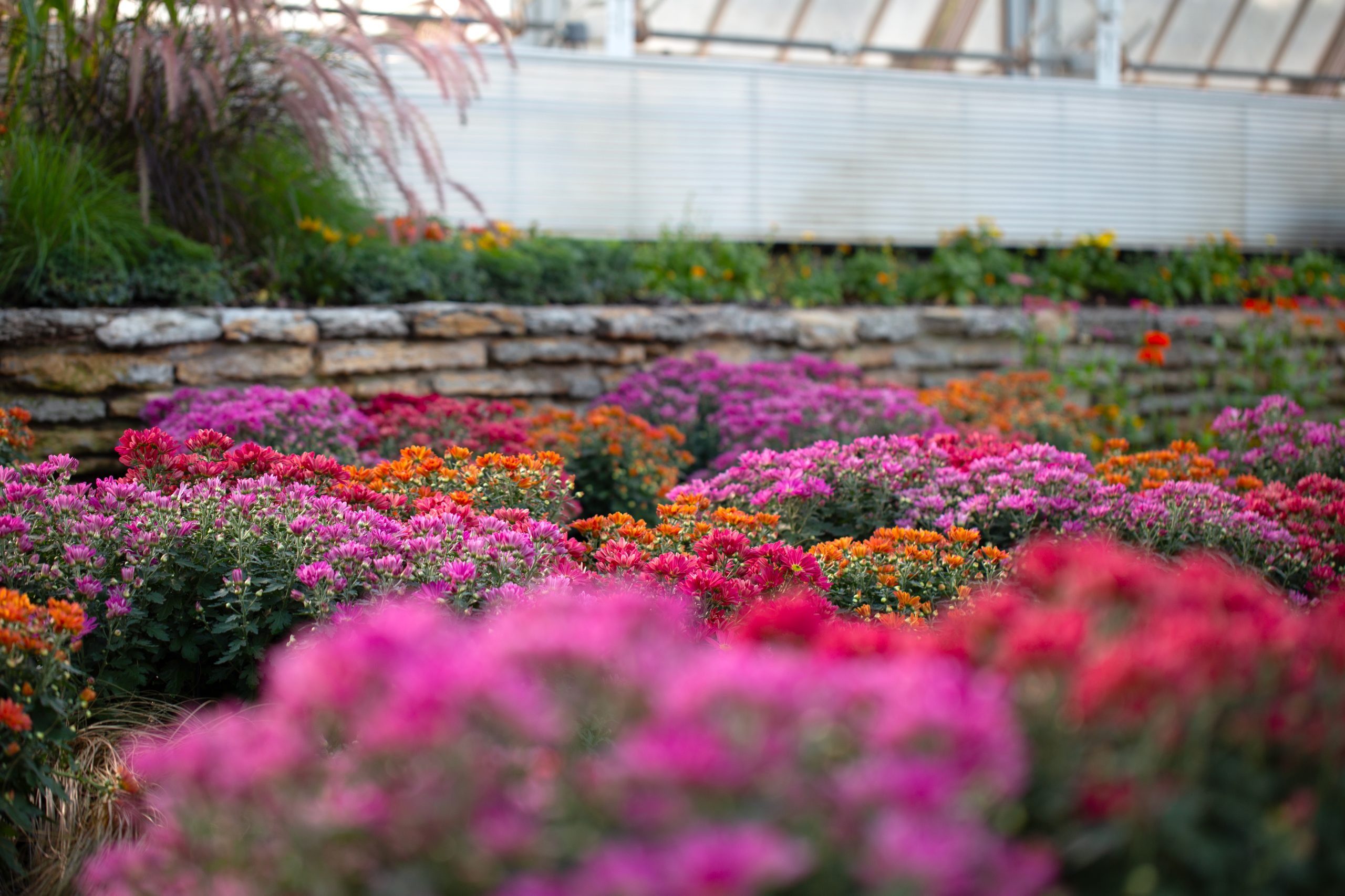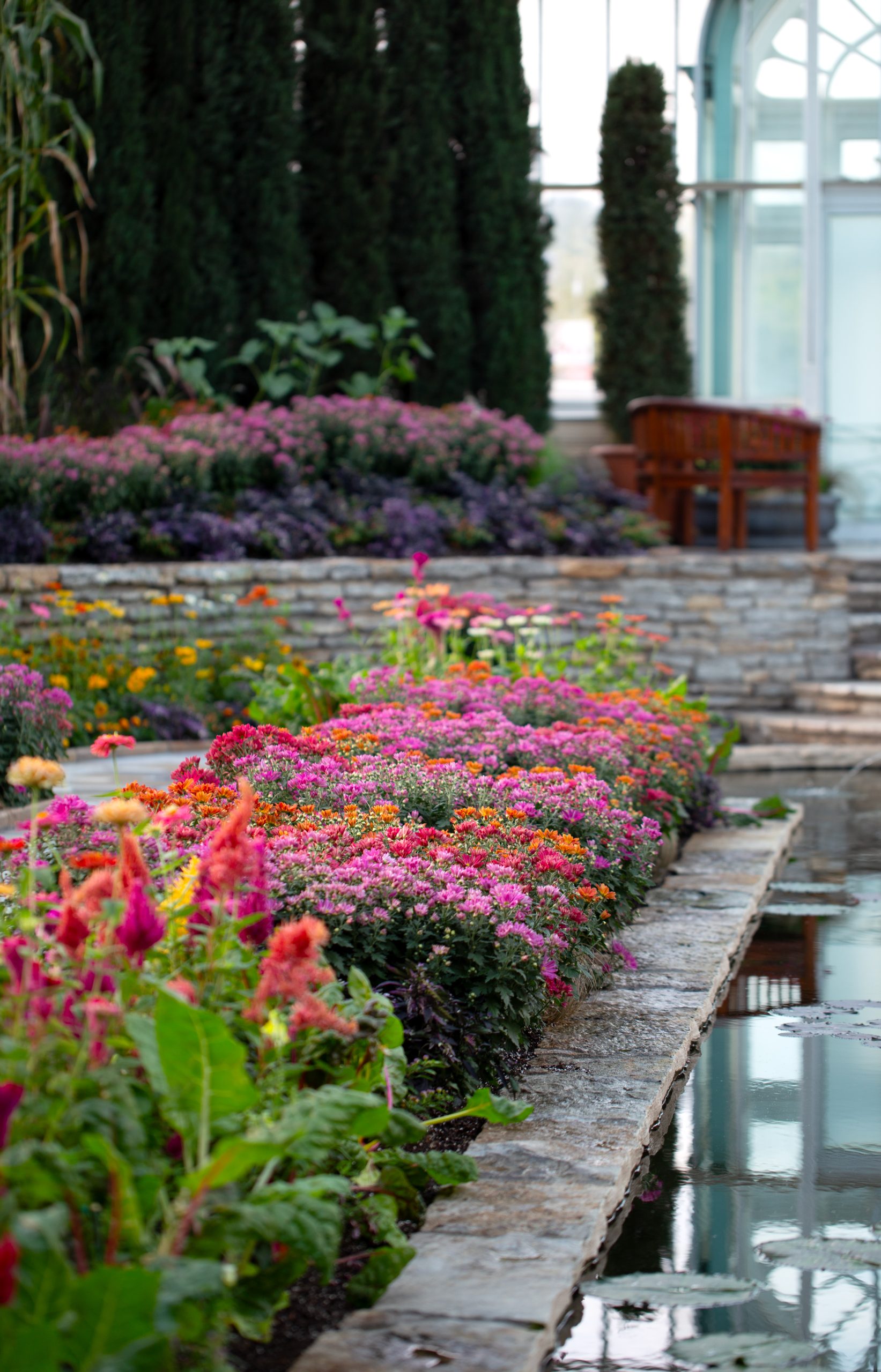Mums also signal the important role that fall’s flowering plants play in fostering healthy ecosystems. “In outdoor gardens, especially those with native plants, fall flowers are so important to feeding those pollinators before their big migrations,” she says. “Flowers like aster and goldenrod give our insects and our wildlife that last bit of juice or food they need to get them through the winter.” To see those connections, Werden suggests that visitors also stop by the Minnesota Garden, a collection of native and adaptive plants in front of Como’s Visitor Center, where horticulturists over-winter native plants to benefit birds and other wildlife. “It’s a more natural lens on what we do in the display garden to signal fall, with seed heads and plants that look ready for harvesting, like chard, broom corn, and celosia flowers.”