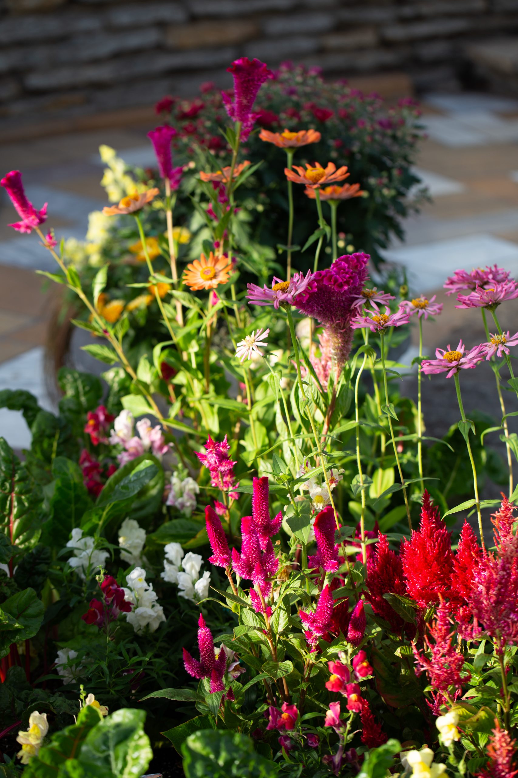 “I always try to think about the different perspectives of someone walking through the garden,” she says. “As you get down to the garden path, the perspective changes and you’ll see some nice grass between the mums to rest your eye, and you’ll see through those angles a bit differently.”