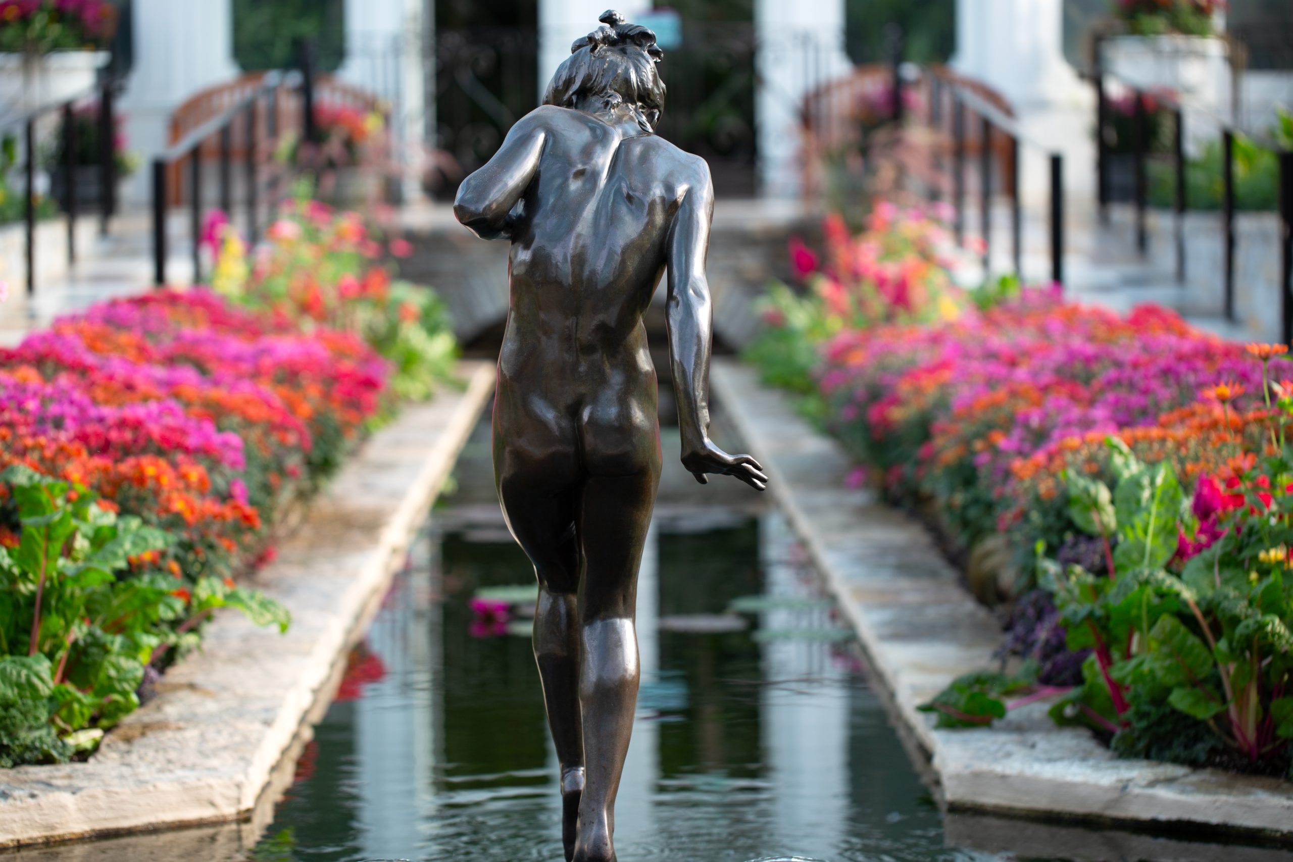 No matter what time of year you visit the Marjorie McNeely Conservatory’s Sunken Garden, the elevated view from the entryway is always stunning. But after designing several seasonal flower shows for Minnesota’s most beautiful room, Como horticulturist Rylee Werden began to wonder what it would be like to play a little more with perspective as visitors move through the room.