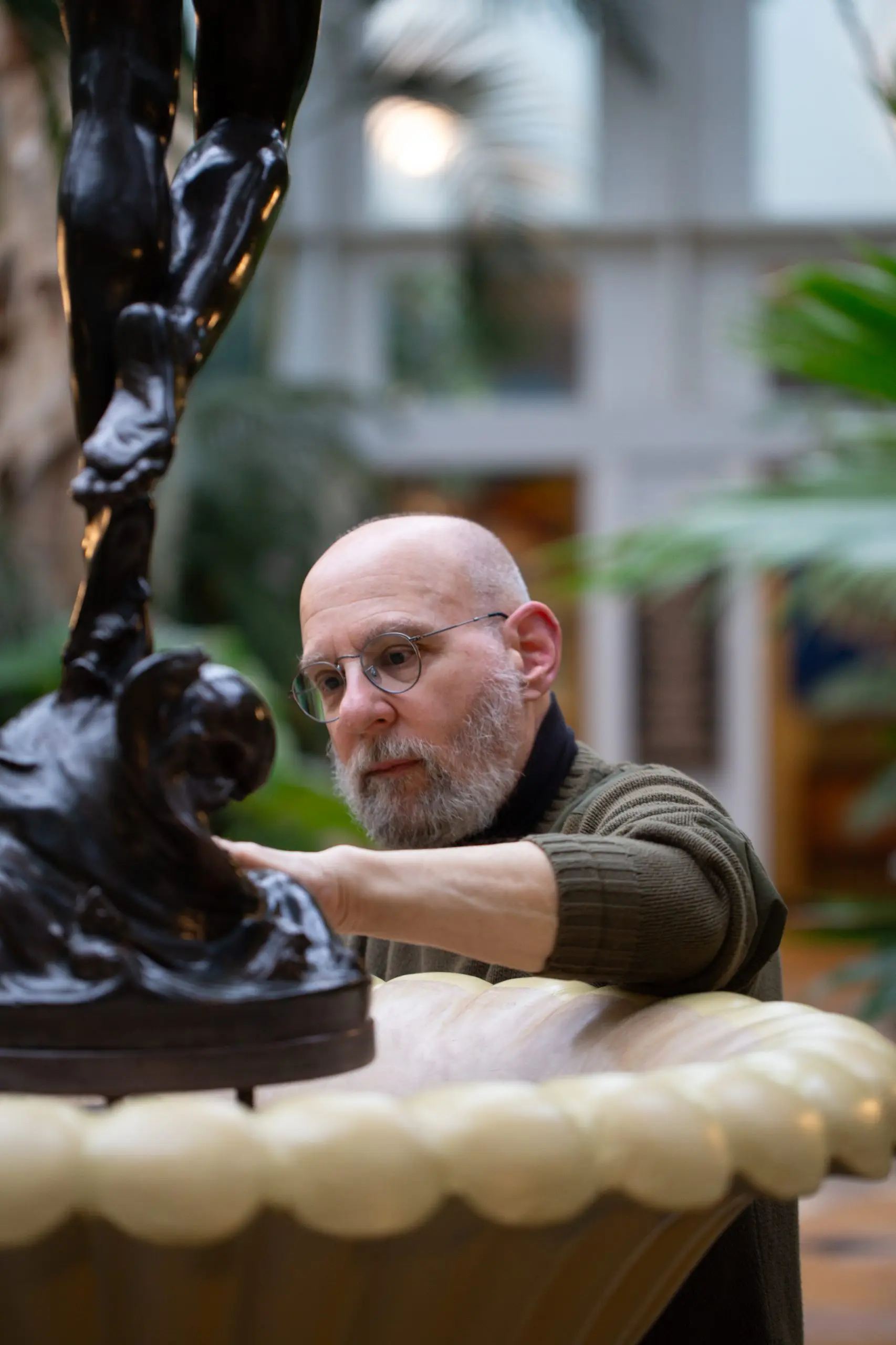 While the sculpture, famously modeled more than a century ago by the dancer Desha Delteil, has been delighting Como visitors for decades, Storch takes a more critical view. A retired museum conservator, he dusts and details the iconic artwork, while studying how the statue’s wax coating is standing up to the elements, noting where minerals and moisture might be building up. From there, he’ll go on to clean and polish the bronze plaques and brass kickplates all around the Marjorie McNeely Conservatory, one of the most beloved buildings on Minnesota’s roster of sites on the National Register of Historic Places.